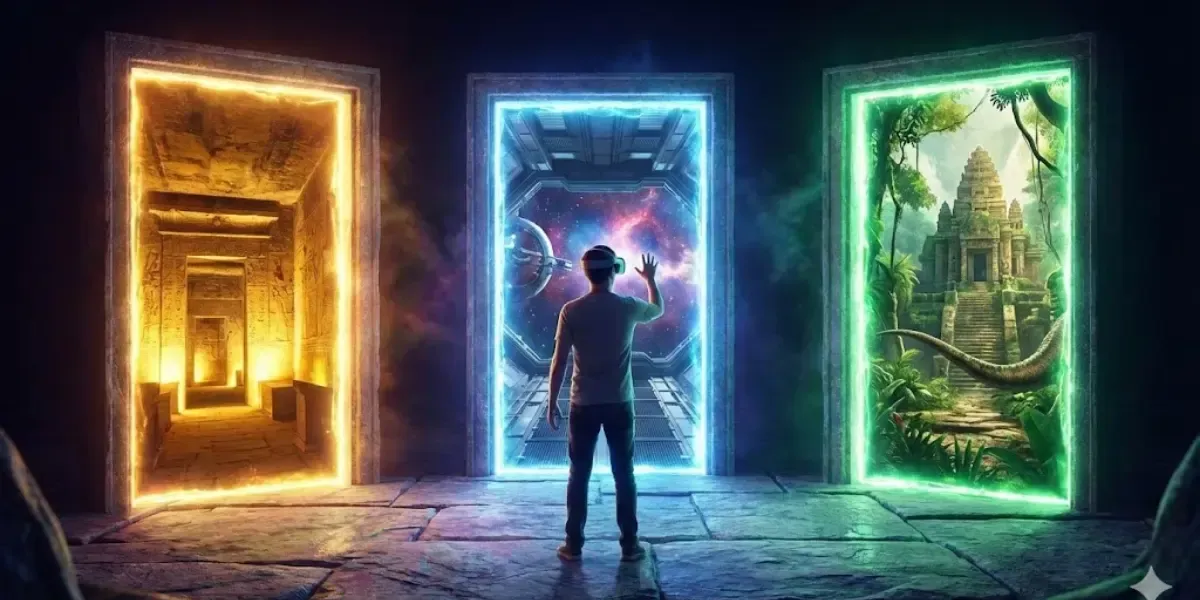 Travel through time! Choose from a library of immersive worlds, from deep space to the Jurassic era.